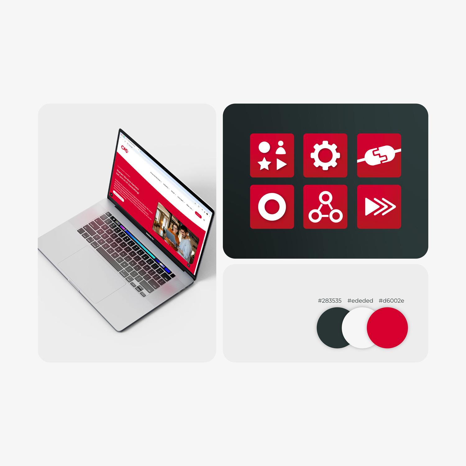 In-house project. For a B2B IT consultancy, I took charge of all design activities – from UX/UI, branding and visuals to web. I developed and maintained the company website, created digital assets such as one-pagers, presentations and social media content, and designed trade fair stands, merchandise and internal campaigns. I also worked closely with HR, sales and management on brand strategy, further developed visual brand elements, conducted workshops and implemented digital campaigns and motion graphics to strengthen brand awareness.